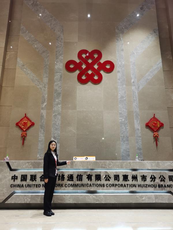 2019年6月畢業后進入廣東惠州聯通工作。目前實習期已滿開始輪崗見習,目標方向為云等新業務。從大山里走出的小姑娘從事著最前沿的通訊業務,開始為社會做貢獻啦!