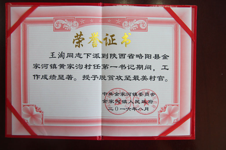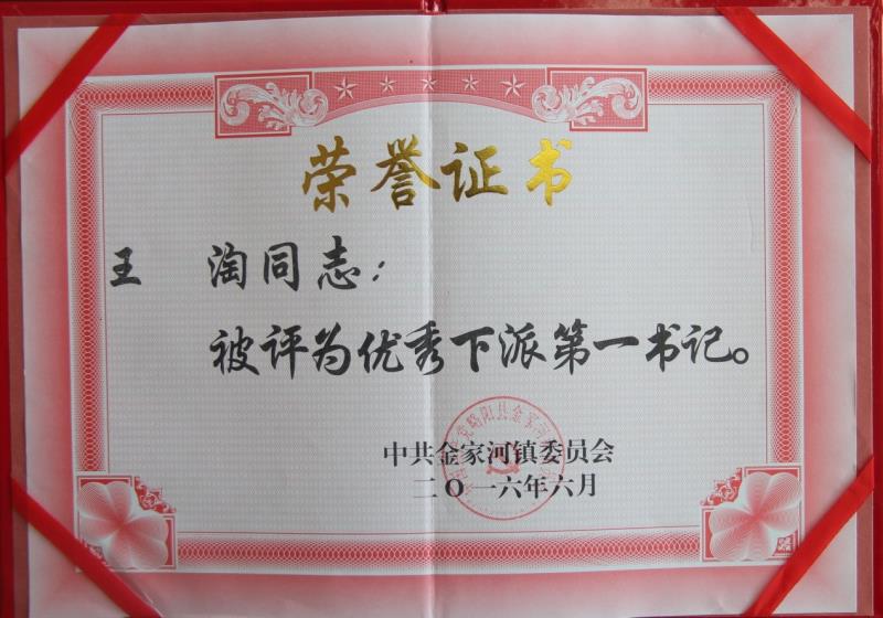 王淘同志飽滿的工作熱情和高尚的政治素質(zhì),贏得了當(dāng)?shù)卣目隙ê痛迕竦膼鄞鳌F咭磺跋ΓS家溝村黨支部被金家河鎮(zhèn)黨委評(píng)為優(yōu)秀黨支部,王淘同志也被鎮(zhèn)黨委評(píng)為優(yōu)秀第一書記和脫貧攻堅(jiān)最美村官。漢中市黨委授予王淘同志全市優(yōu)秀第一書記稱號(hào)。王淘同志的駐村工作得到了國防科工局機(jī)關(guān)和國防科工局協(xié)作配套中心的肯定,這是他本人的成績,也是軍友誠信認(rèn)證公司的榮譽(yù)和驕傲。